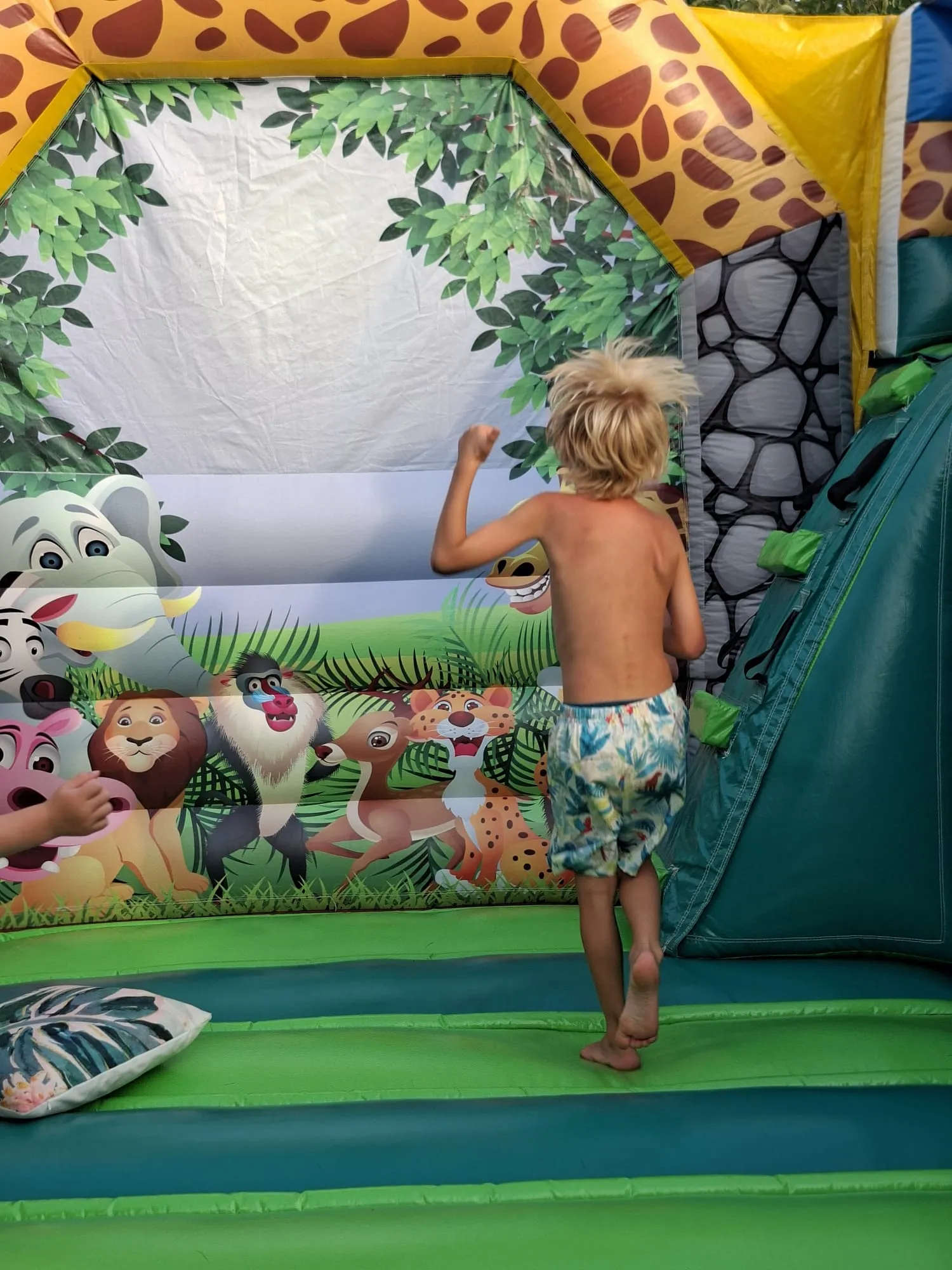 3. WICHTIG: Hüpfburg gründlich trocknen- Lassen Sie die Hüpfburg nach der Reinigung 3-5 Stunden mit laufendem Gebläse in der Sonne trocknen.