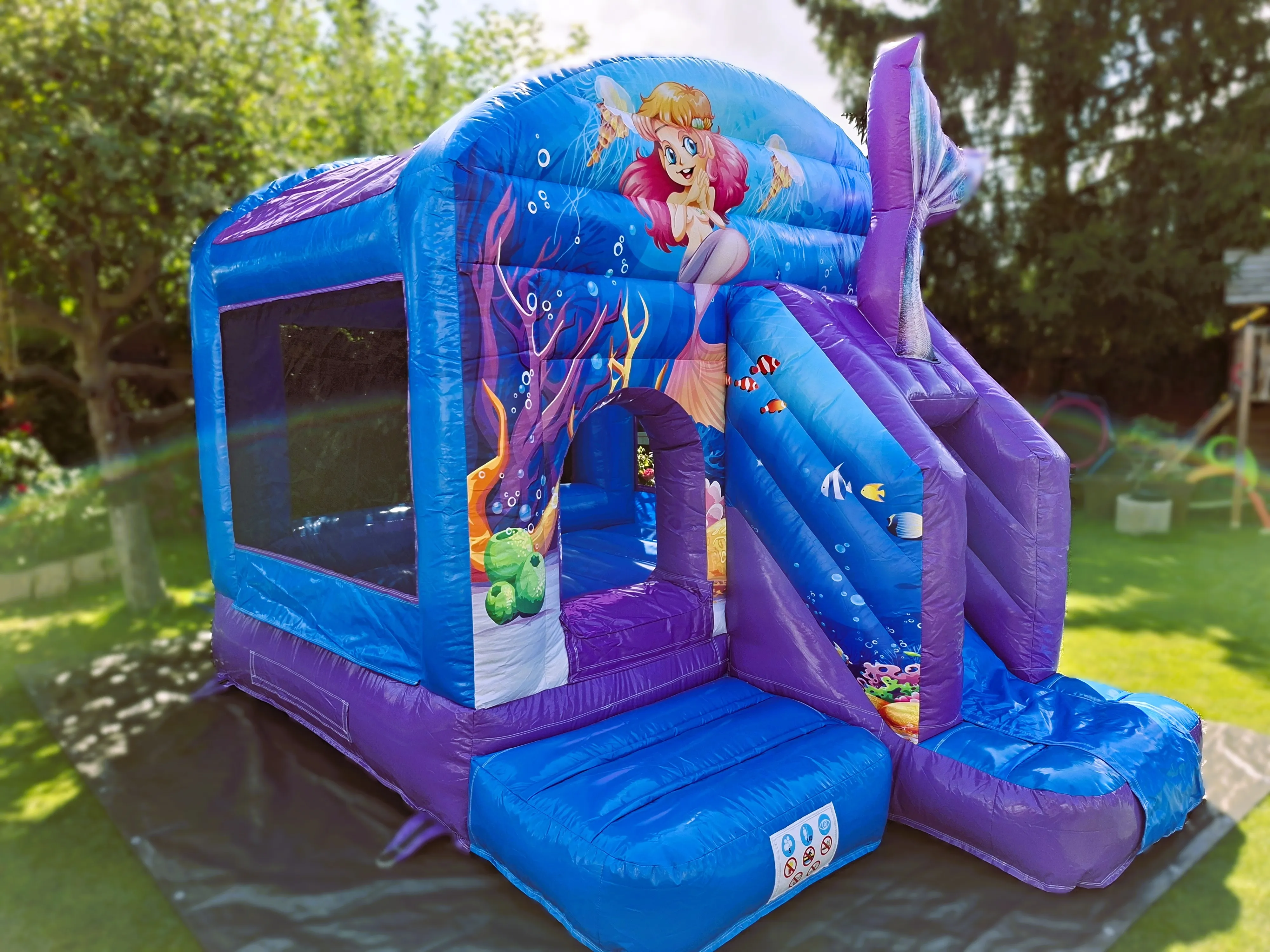 im zauberhaften Meerjungfrauen-Design! Diese beeindruckende Hüpfburg bietet grenzenlosen Spaß für Kinder und macht jedes Event